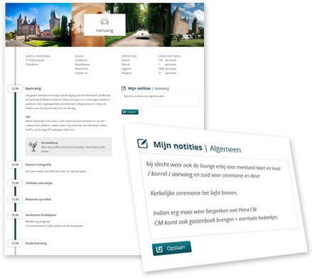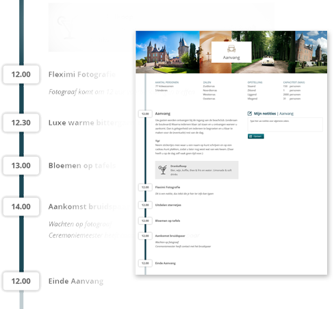 Wat moet uw klant allemaal regelen voor de bruiloft of het event? Met deze module helpt u ze met het plannen & organiseren.