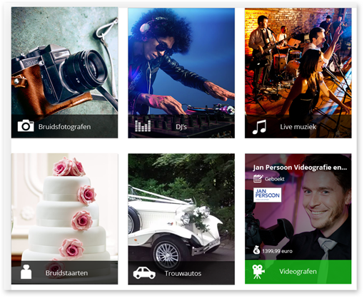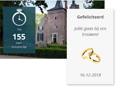 Geef uw bruidsparen de mogelijkheid om alles online te regelen in uw eigen (white label) omgeving. Leveranciers, gastenlijst, to-do lijsten, dieetwensen en zelfs een eigen trouwsite (met routebeschrijving, programma etc).